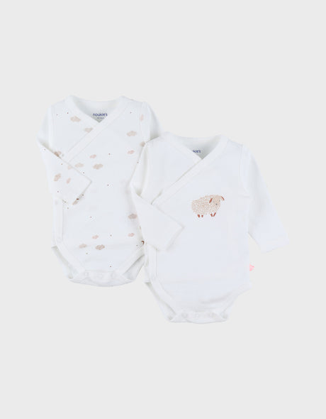 Lot de 2 bodies croisés en coton imprimé mouton