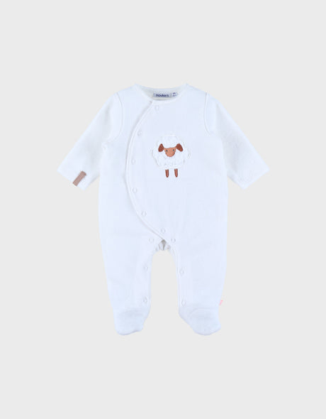 Pyjama bébé en velours blanc avec broderie mouton