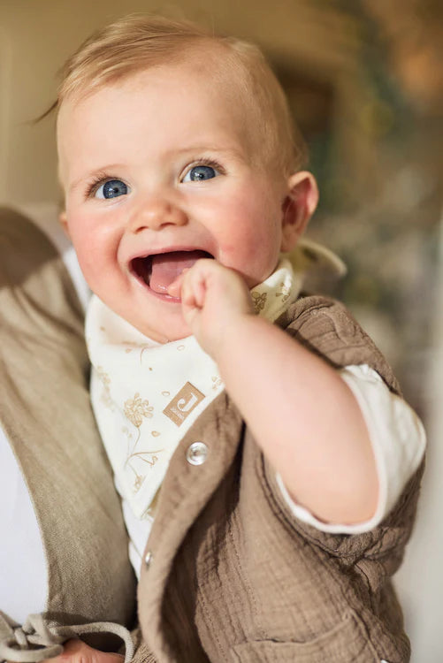 Ces bavoirs bandana de la collection Leafy Dreams sont parfaits pour bébé ! Le lot contient deux bavoirs à l’allure naturelle avec un imprimé subtil inspiré de l’esprit aventurier de Leafy Dreams. Le bouton-pression garantit un bon maintien et le tissu doux protège la peau délicate. Ils absorbent très bien : idéals pour les bébés bavouilleurs !