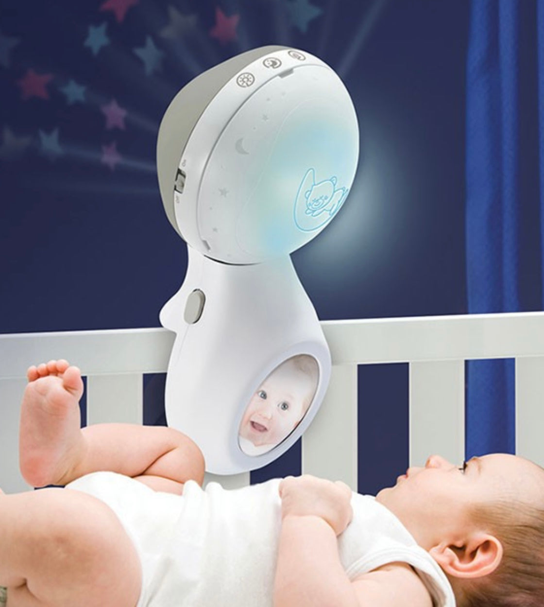 Ce mobile et projecteur multi-étapes est conçu pour calmer et réconforter votre petit rêveur. Pendant l'étape 1, le mobile fixé sur le lit permettra à bébé d'observer d'adorables animaux flottant au-dessus lui, d'écouter une musique apaisante et de regarder une douce lumière. Lorsque bébé atteint l'âge de 3-6 mois, l'étape 2 propose un projecteur de lumière qui projette des motifs étoilé sur le mur. L'étape 3, destiné aux enfants de 6 mois et plus, vous permet de retirer le mobile du lit et de le placer sur une table, il projettera alors ses motifs étoilés sur le plafond. Les trois étapes sont réglées sur des séquences de 30 minutes permettant aux lumières et aux sons de s'estomper progressivement.